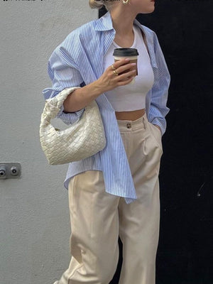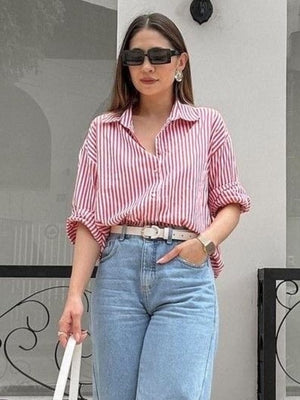 Camisa versátil con diseño a rayas, perfecta para la oficina y para cualquier ocasión ,elaborada en popelina un material que se adapta a cualquier clima, es talla única se recomienda para tallas SML.