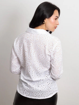 Dale un toque de sofisticación y feminidad a tu look con esta camisa blanca bordada, una prenda que combina delicadeza, estilo y versatilidad. Su diseño con bordado tipo ojo de ángel crea un efecto romántico y ligero, perfecto para quienes aman los detalles únicos, se recomienda para tallas S.M.L..