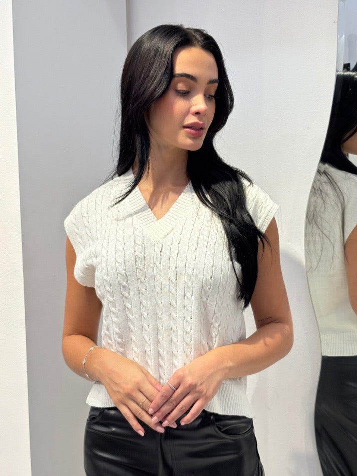 Este chaleco tejido es la definición de elegancia sin esfuerzo.