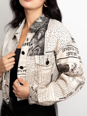 Atrévete a destacar con una prenda que cuenta su propia historia. Esta chaqueta DENIM estilo periódico combina el encanto vintage con un toque urbano y moderno. Su diseño único en tonos neutros la convierte en el complemento perfecto para transformar cualquier outfit básico en una declaración de estilo. Sirve a tallas SML.